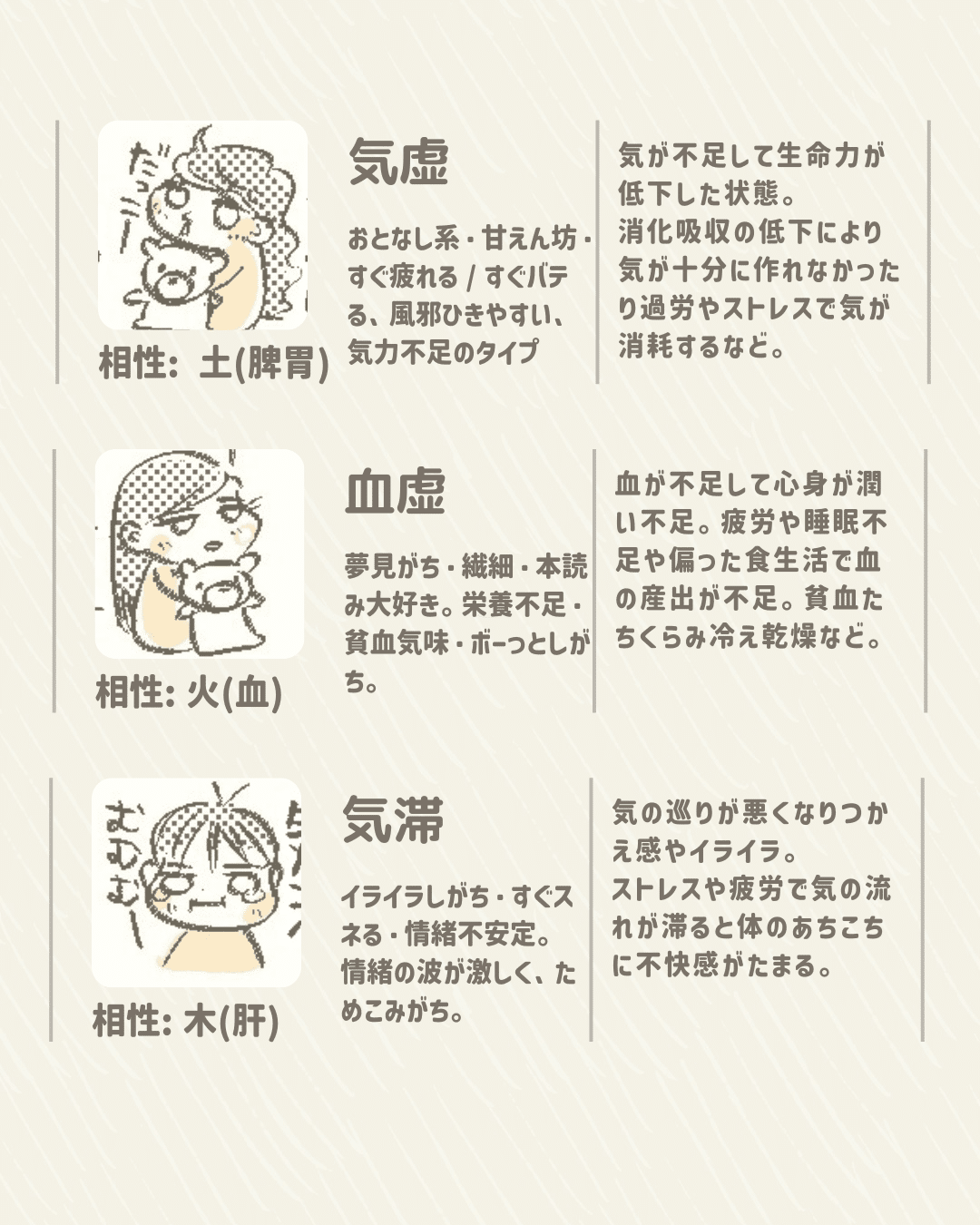親子・兄弟でも似ているようで似ていません。 ・冷えやすい人 ・熱がこもりやすい人 ・胃腸が弱い人 ・ストレスで体調が乱れやすい人 ・むくみやすい人 ・免疫が落ちやすい人 …体の傾向は本当にさまざまです。 だからこそ、 全員に同じ方法をしてもうまくいかない。 自分の体質が分かると、 ・何を食べれば良いか ・どんな生活習慣が合うか ・どんな漢方が効くのか すべてが明確になり、 不調の改善スピードが驚くほど変わります。 💬こんなお悩みはありませんか? |